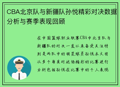 本篇文章围绕CBA联赛中的福建队与吉林队的精彩对决展开,深入探讨这场比赛的各个方面。摘要将从球队背景、战术分析、球员表现及观众期待四个方面进行阐述。首先,两支球队在CBA联赛中的历史交锋记录为本次对决增添了不少看点。其次,在战术层面上,福建队与吉林队各有千秋,双方教练的策略将直接影响比赛结果。此外,球员个人表现也是比赛成败的重要因素,各大明星球员能否在关键时刻挺身而出,将决定最终胜负。而最后,观众...